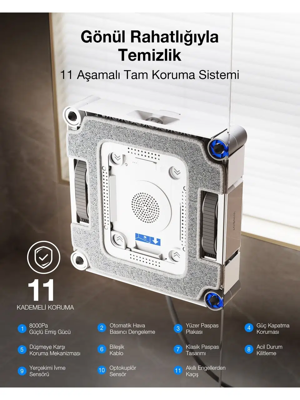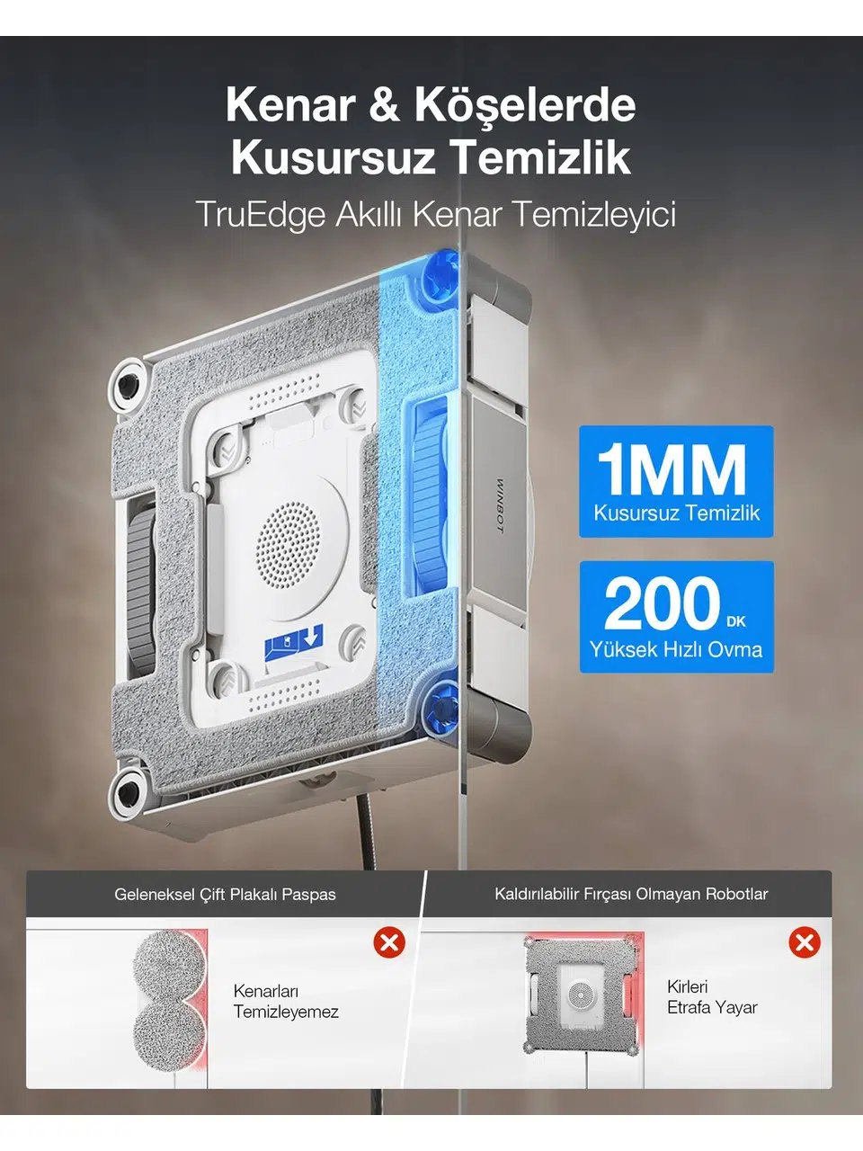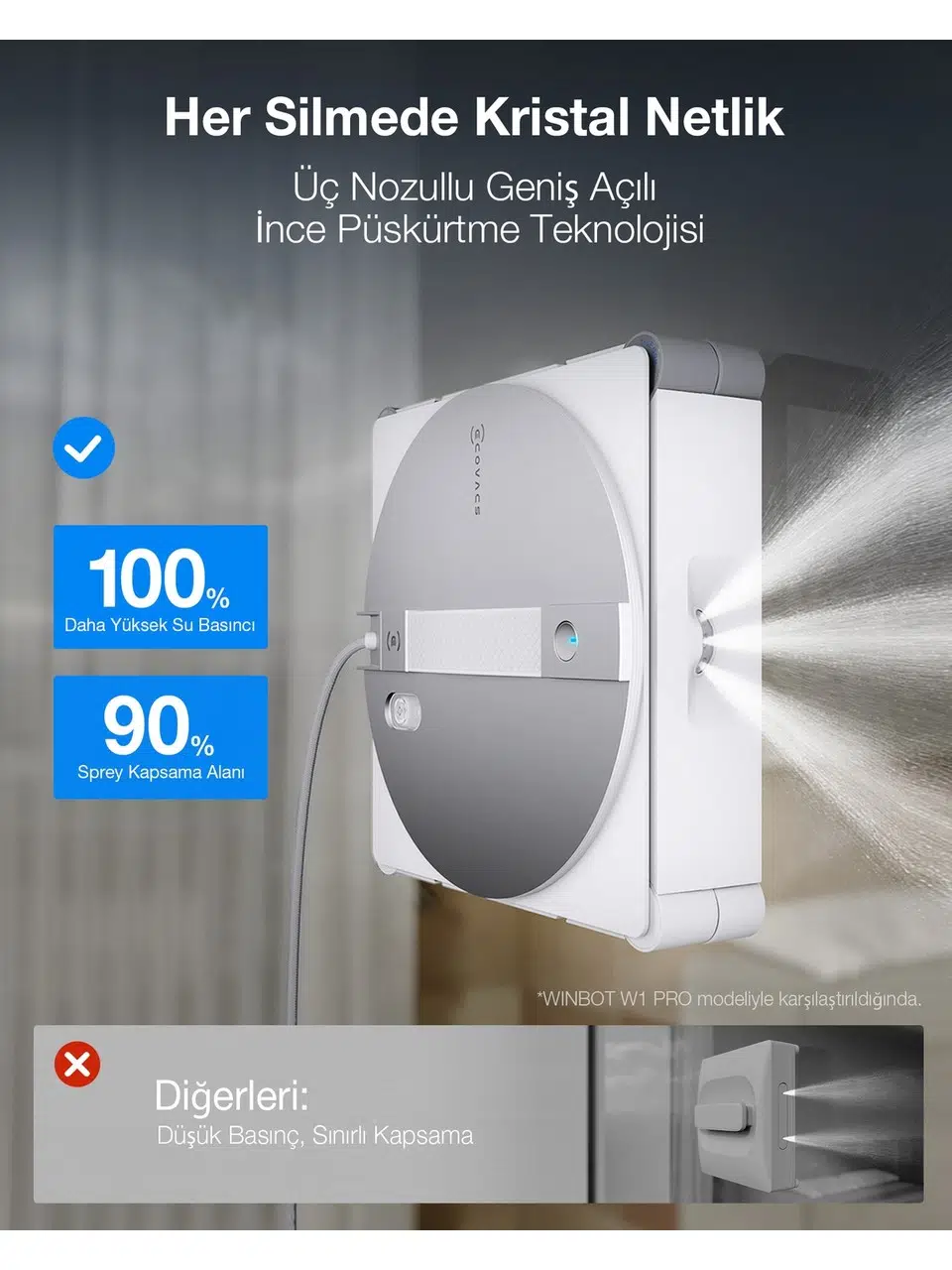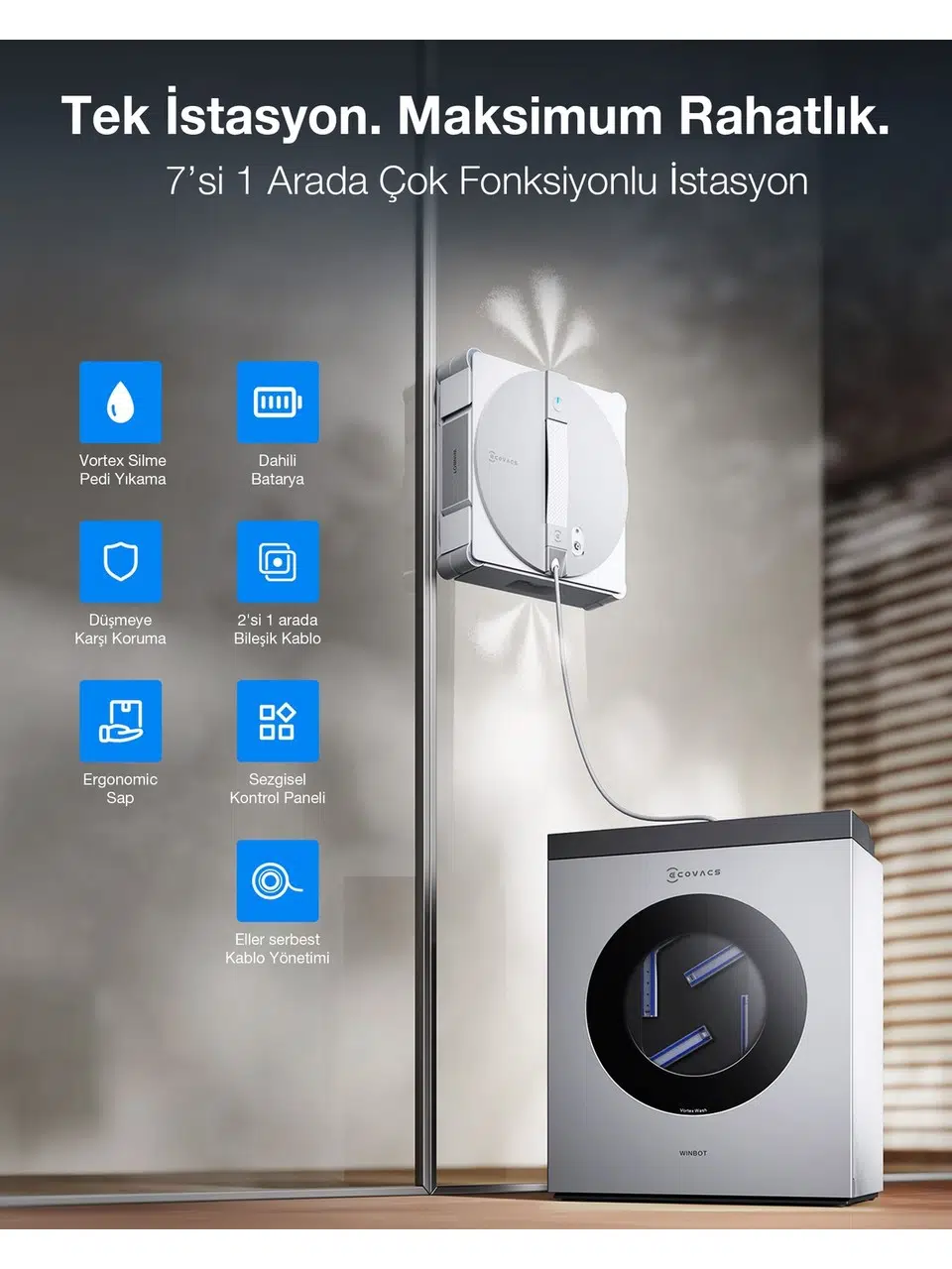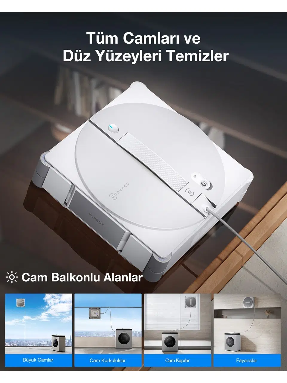 | Etiketler | Ecovacs Winbot W3 Omni Cam Silme Robotu, 10000PA, Wın-Slam 5.0 Akıllı Yol Planlama, Vortex Yıkamalı Akıllı Istasyon |